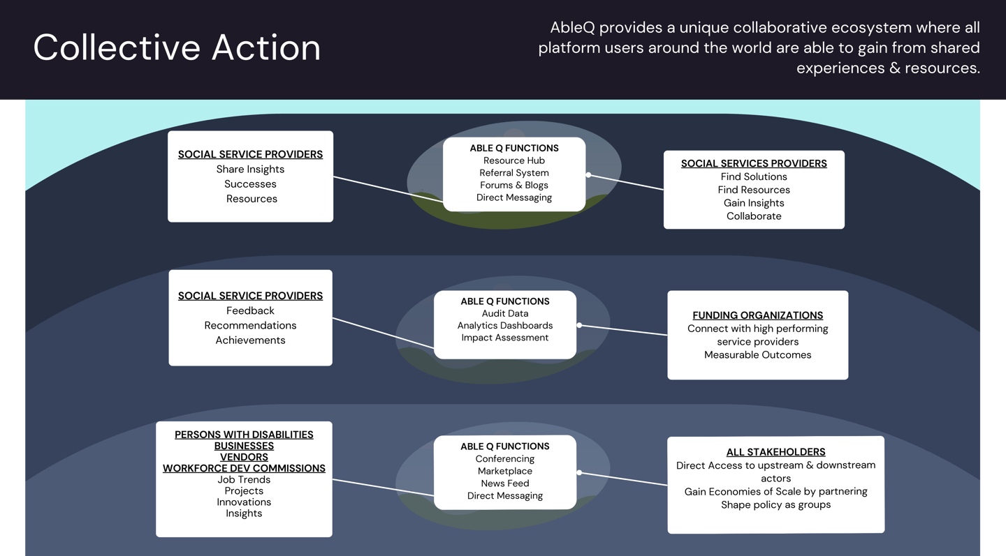 NGO's, social service providers, workforce development organizations, business and funding agencies around the world, have a unique social environment, to share insights, resources, knowledge, and achievements to improve their stated goals.