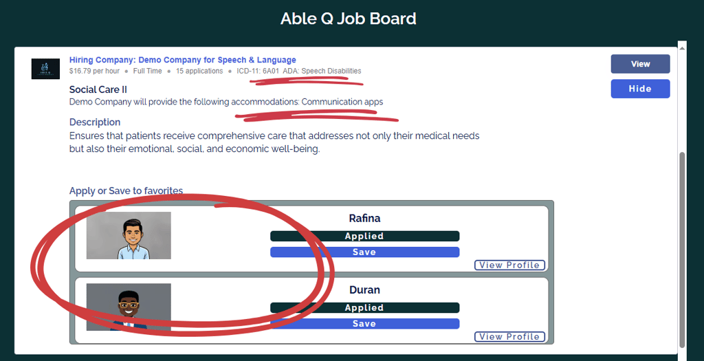 Our jobs are natively designed for persons with disabilities. The hiring company uses our platform to eliminate each disability type's obstacles.