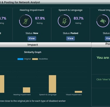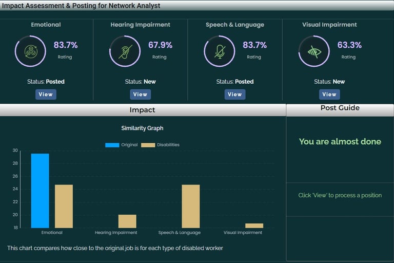 Hiring companies use our platform to assess the impact of each type of disability on productivity and choose the best-fit jobs to post.